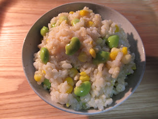 When the rice was ready, I removed the cob and blended edamame into it. The rice looked like this.